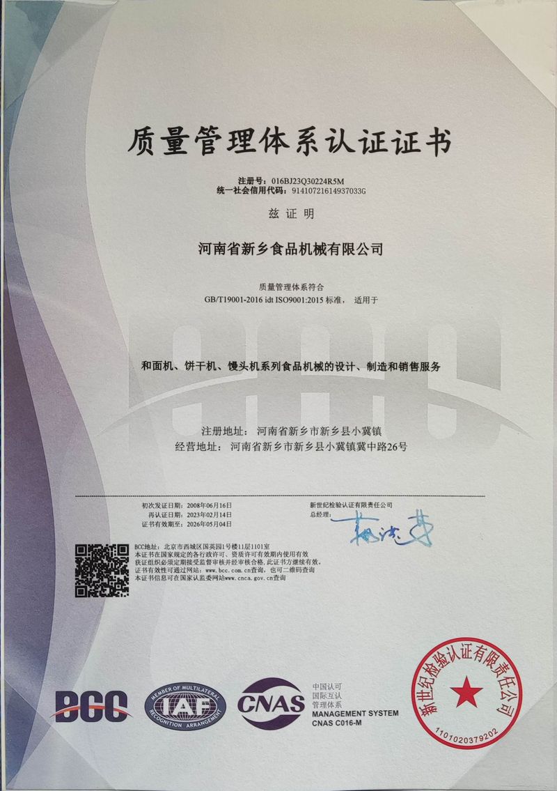 河南省新鄉(xiāng)食品機(jī)械有限公司,是一家研制、生產(chǎn)、銷售食品機(jī)械的企業(yè)。半個(gè)世紀(jì)以來,以吉牌和面機(jī)為領(lǐng)軍產(chǎn)品,陸續(xù)研發(fā)出系列真空和面機(jī)、系列雙軸雙速拌餡機(jī)、速凍水餃制皮機(jī)、復(fù)合壓延機(jī)、高速疊層機(jī)、卷皮機(jī)、往復(fù)式壓面機(jī)、壓面機(jī)、絞龍式饅頭機(jī)、刀切饅頭機(jī)、電氣自動蒸箱、系列饃片生產(chǎn)線、系列餅干生產(chǎn)、米雪餅生產(chǎn)線、法餅生產(chǎn)線。