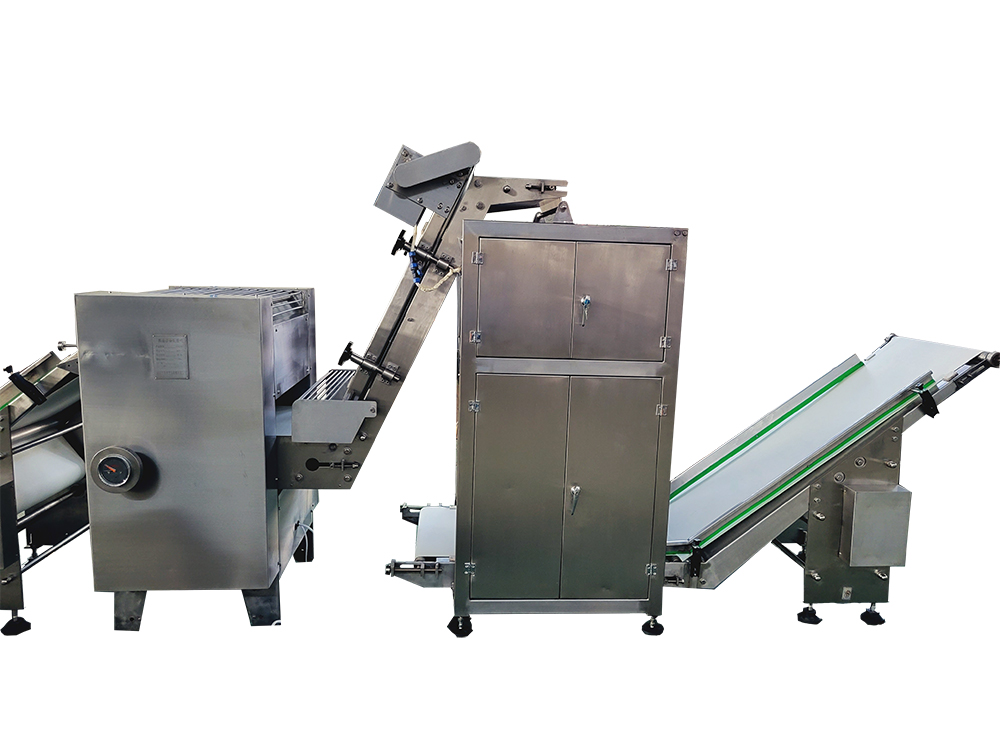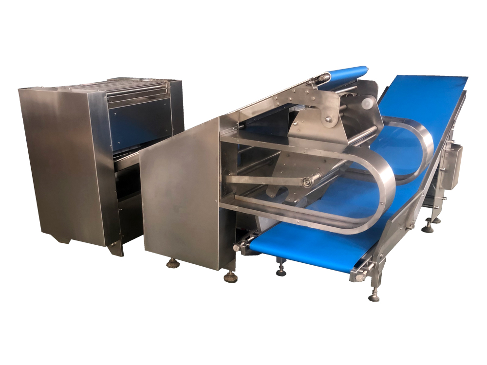 2、疊層機(jī)使面帶Z字型折疊,進(jìn)一步豐富面帶網(wǎng)狀結(jié)構(gòu),提高面筋度,設(shè)備可根據(jù)客戶場(chǎng)地需求選擇不同的擺放形式。