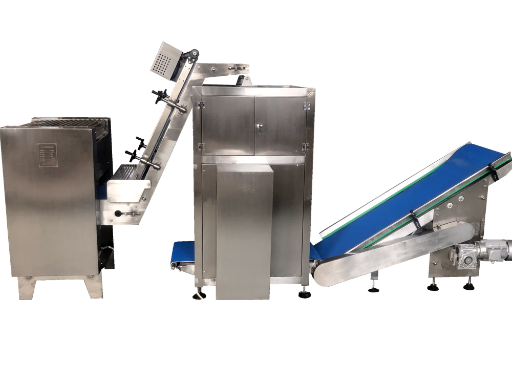→復(fù)合、壓延、疊層、分切卷皮機(jī)系列  →型號(hào)215/230/280/330/360/540/560型。225型殘皮還原機(jī)  →功能  該系列為配套國(guó)內(nèi)外品牌的餃子機(jī)、餛飩機(jī)使用的面帶軋制設(shè)備。  →特色  1、復(fù)合機(jī)搭配搗面裝置,可使真空和面機(jī)和制出的團(tuán)狀、絮狀面團(tuán),自動(dòng)連續(xù)的進(jìn)入軋制過(guò)程?! ?、疊層機(jī)使面帶Z字型折疊,進(jìn)一步豐富面帶網(wǎng)狀結(jié)構(gòu),提高面筋度,設(shè)備可根據(jù)客戶場(chǎng)地需求選擇不同的擺放形式?! ?、多組壓延機(jī)為變頻控制,每一道壓輥都采用單機(jī)驅(qū)動(dòng),通過(guò)測(cè)距傳感器,實(shí)現(xiàn)自動(dòng)面帶張緊控制,多輥聯(lián)動(dòng)。進(jìn)一步簡(jiǎn)化操作,保證壓延比,滿足多種工藝要求,加工出質(zhì)量穩(wěn)定的面帶?! ?、可根據(jù)不同餃子機(jī)要求軋制不同 規(guī)格厚度及寬度的面帶,面帶經(jīng)過(guò)分切后自動(dòng)打卷,操作簡(jiǎn)單,安全可靠?! ?、以上設(shè)備均采用不銹鋼軋輥,及符合國(guó)家衛(wèi)生標(biāo)準(zhǔn)材料。  6、具體壓輥對(duì)數(shù)可根據(jù)客戶實(shí)際需求定制?!  饕夹g(shù)參數(shù)產(chǎn)品型號(hào)總功率(kW)高線速度(m/min)壓面厚度(mm)電壓(V)外形尺寸長(zhǎng)×寬×高(mm)215型8.1515457263807104*764*1356230型8.1515457263807104*764*1356280型8.1515457263807104*764*1356330型8.9515457263807104* 884*1356360型8.9515457263807104* 884*1356400型8.9515457263807104* 884*1356540型13154572638010386*1400*1400560型13154572638010386*1400*1400225型殘皮還原機(jī)1.58.26380950*1130*1500